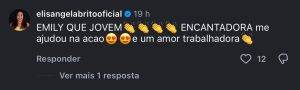Ao interagir em comentários sobre o casal, Elisangela demonstrou carinho e admiração pela influenciadora, ressaltando sua dedicação e postura durante a iniciativa. Segundo ela, Emilly se mostrou atenciosa e disposta a ajudar, o que contribuiu para uma boa impressão dentro da família.
